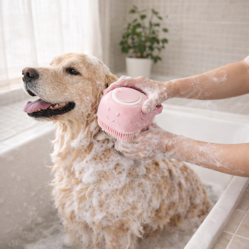 Gently removes loose fur and dead skin while bathing, helping reduce shedding and leaving your pet’s coat cleaner and healthier.
